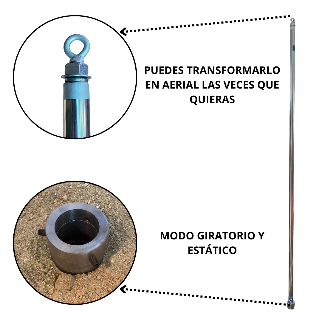 Pole Dance de Acero Inoxidable Importado diseñado para exteriores. Entrena en la playa, el campo o la cordillera con total libertad y seguridad. Ideal para bailarinas que buscan practicar al aire libre con calidad profesional.